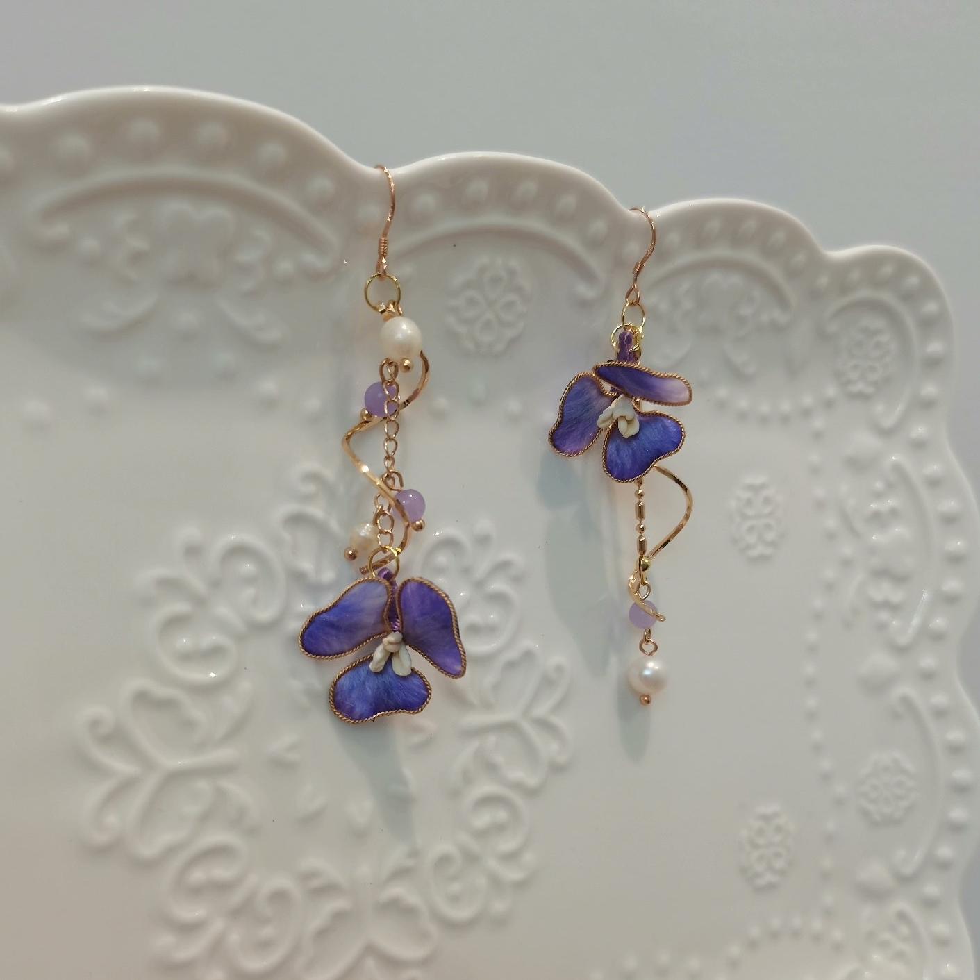 Purple Flower Bespoke Earring - Silk Earring(Ronghua)