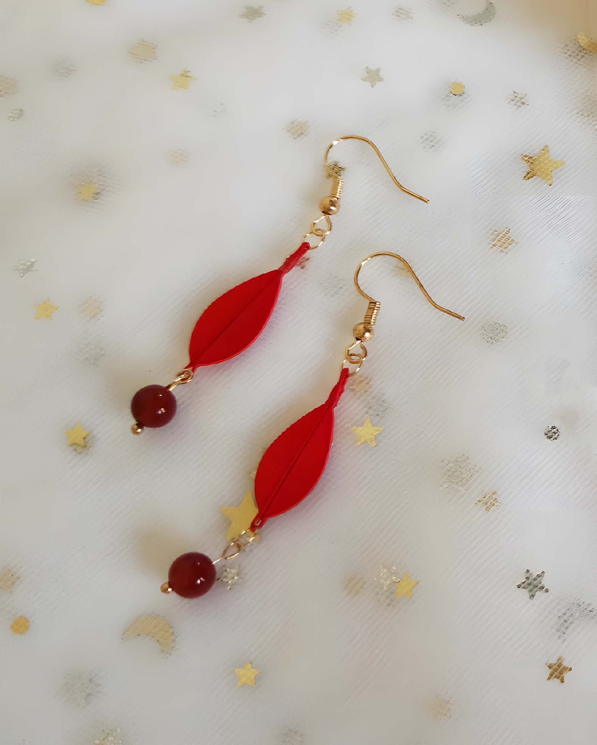 Red: artificial silk, color-conserving copper, red agate;