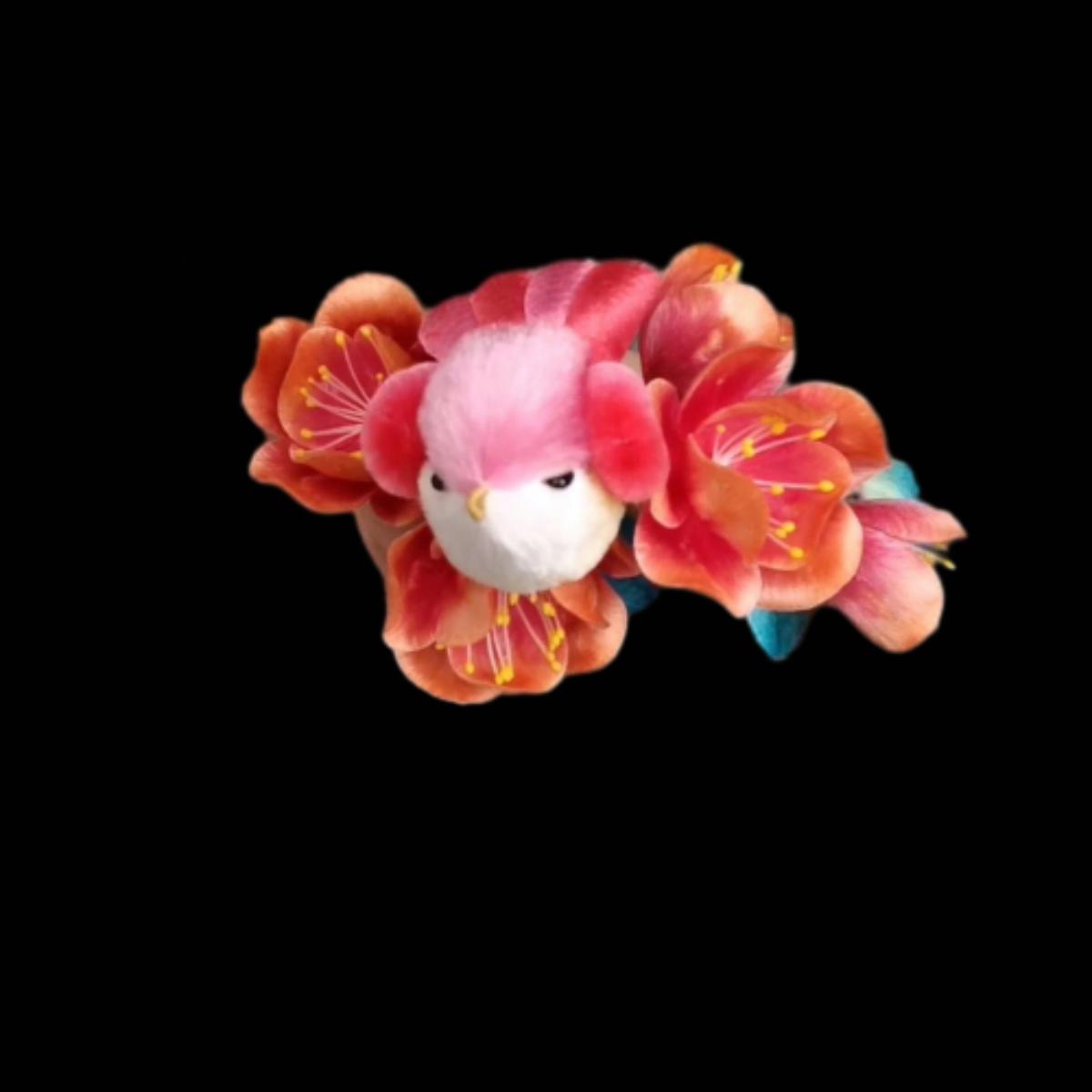 Red Bird And Flowers Bespoke Hairpin - Silk Hairpin(Ronghua)