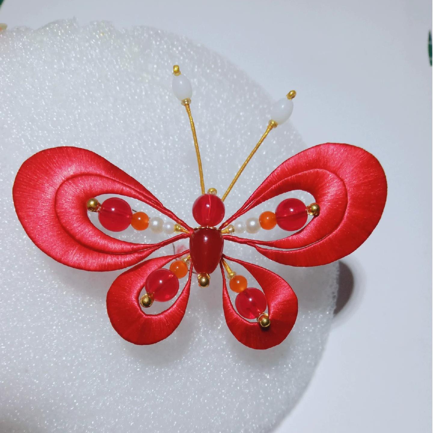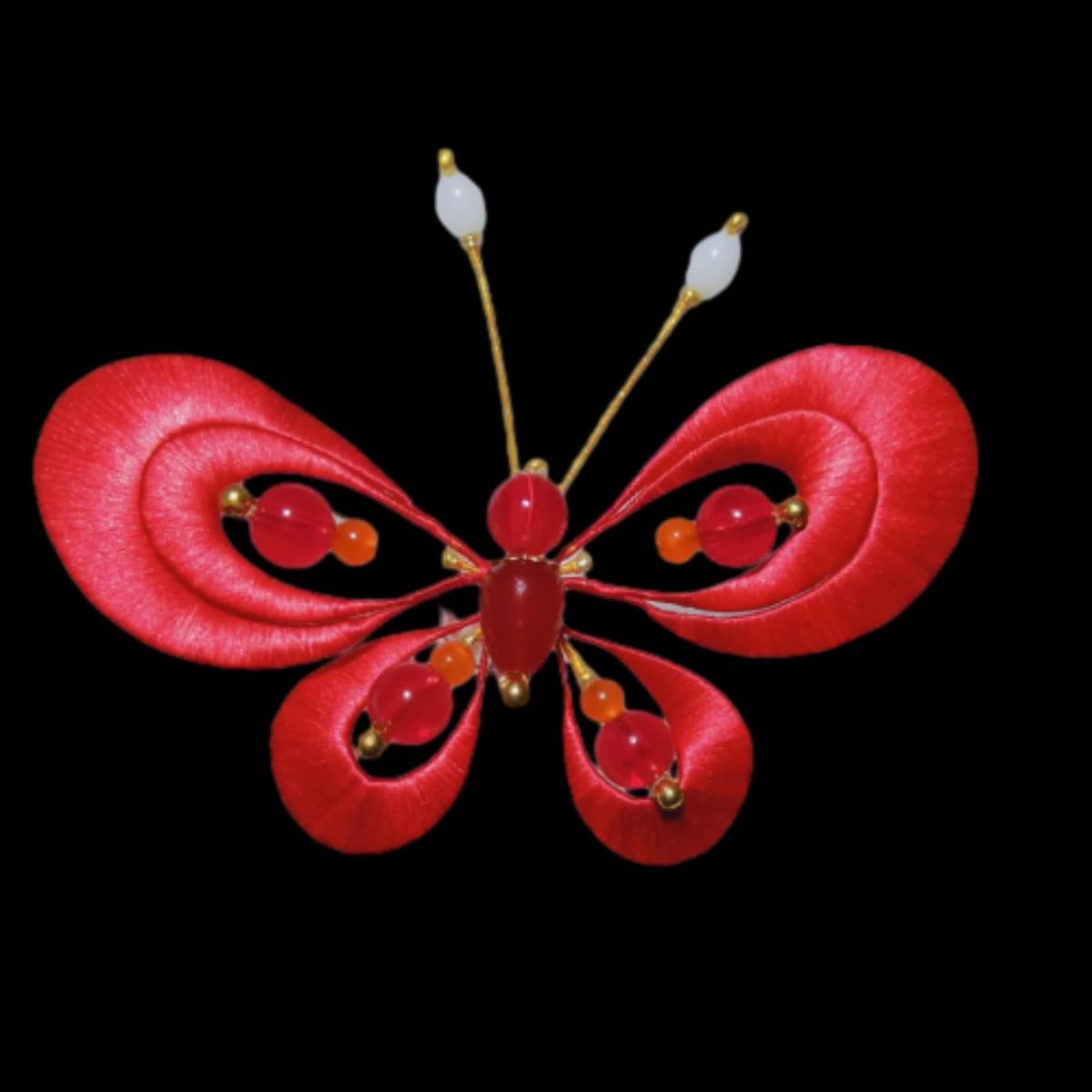 Red Butterfly Handmade Brooch - Silk Brooch(Chanhua)