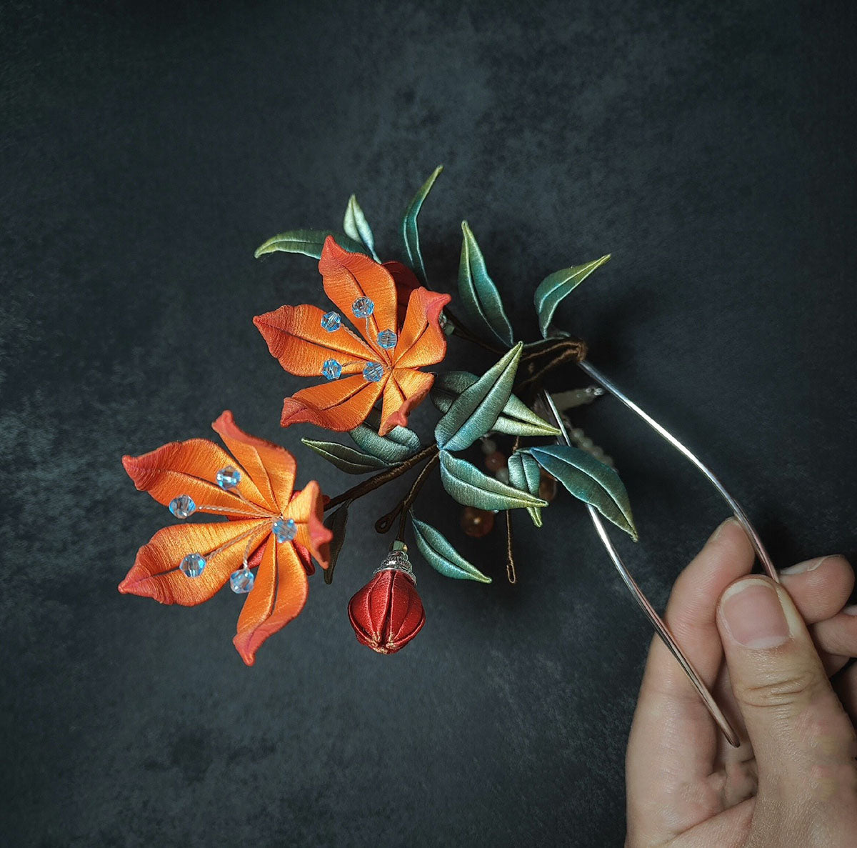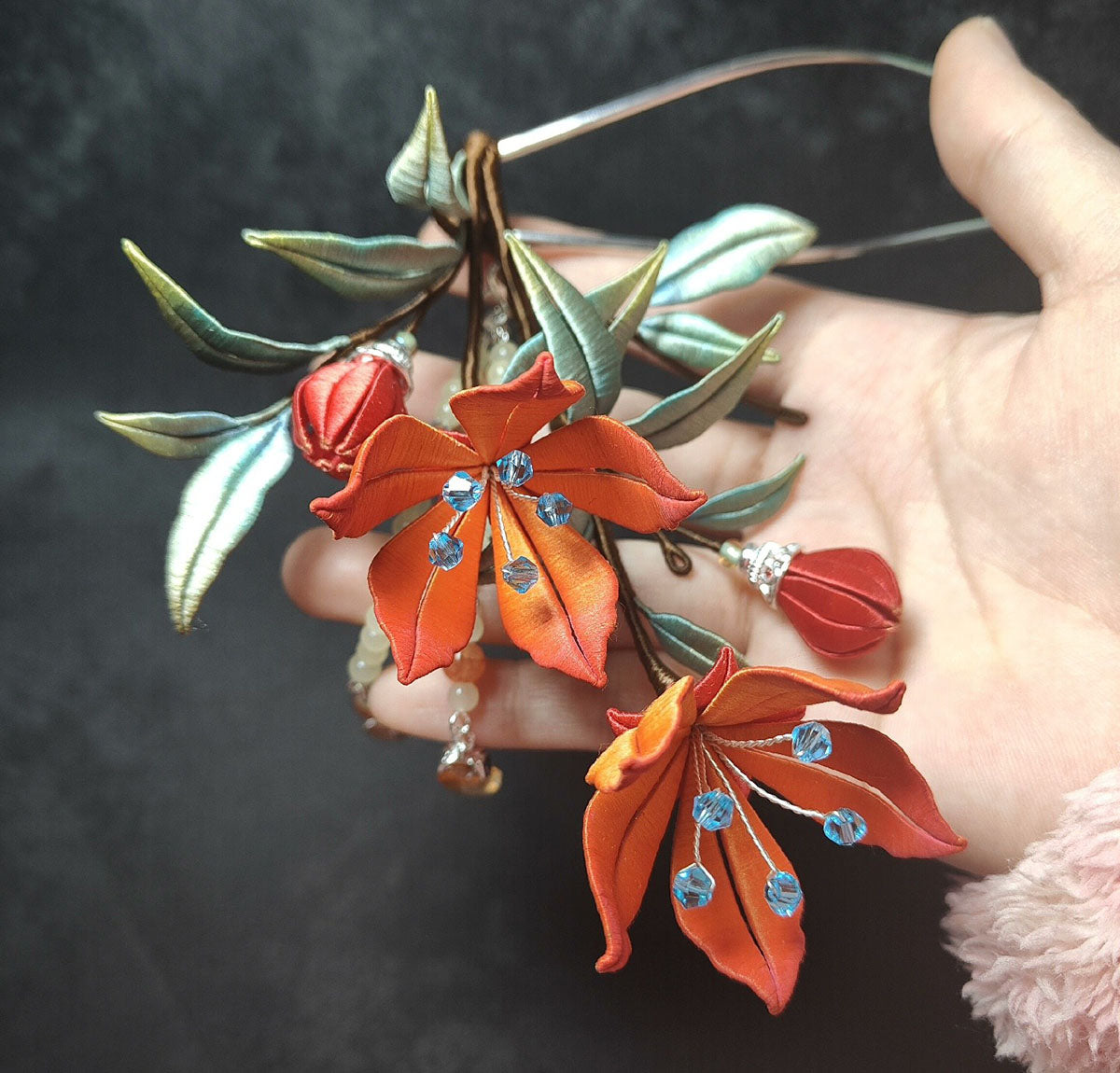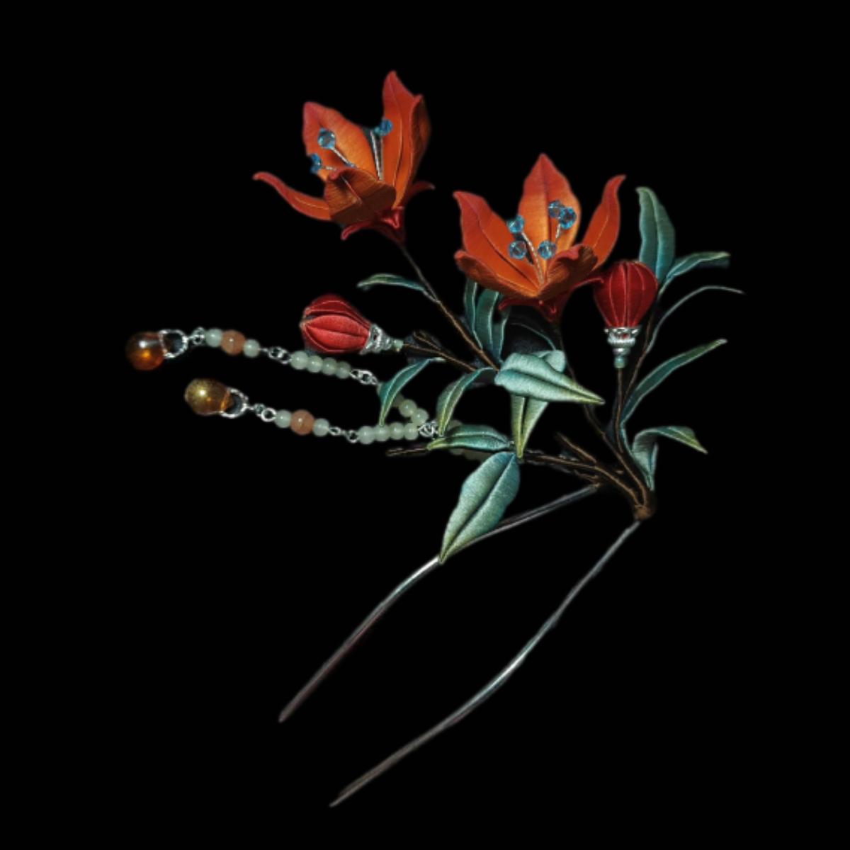 Red Flower Bespoke Hairpin - Silk Hairpin(Chanhua)