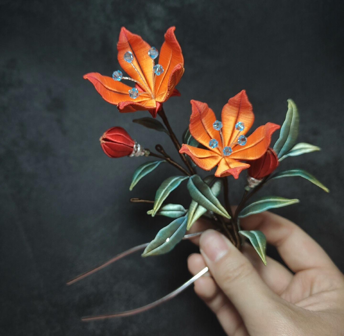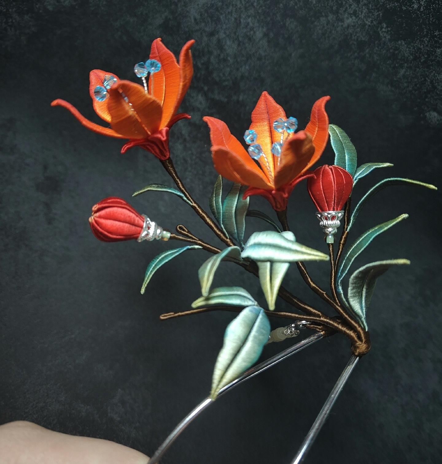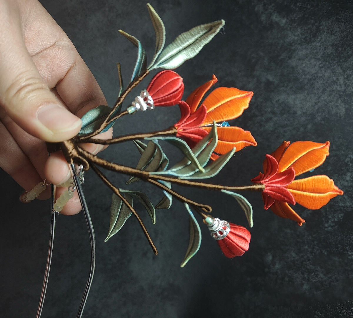 Red Flower Bespoke Hairpin - Silk Hairpin(Chanhua)