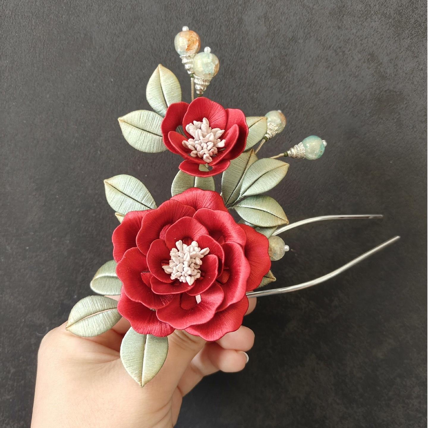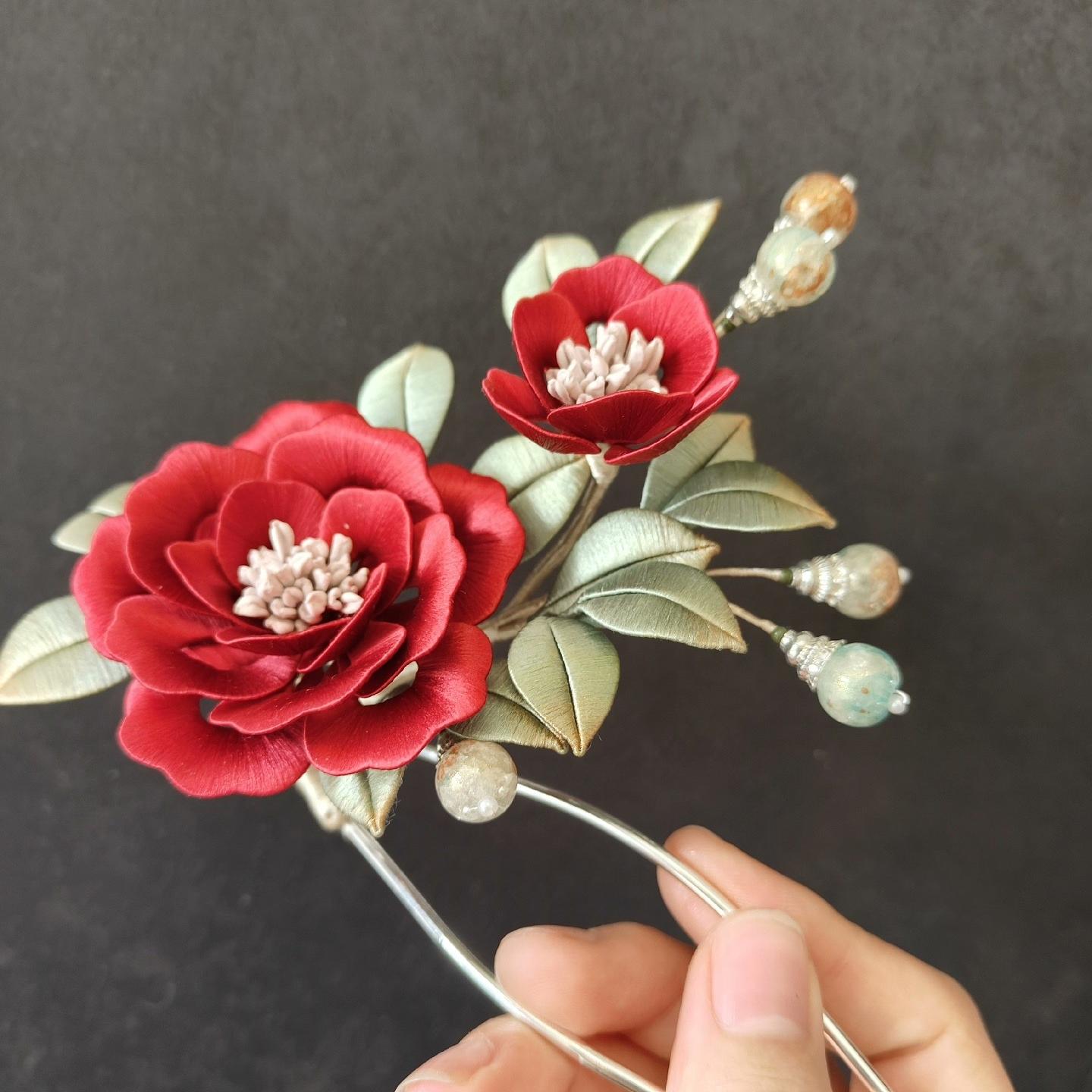 Red Peony Bespoke Hairpin - Silk Hairpin(Chanhua)