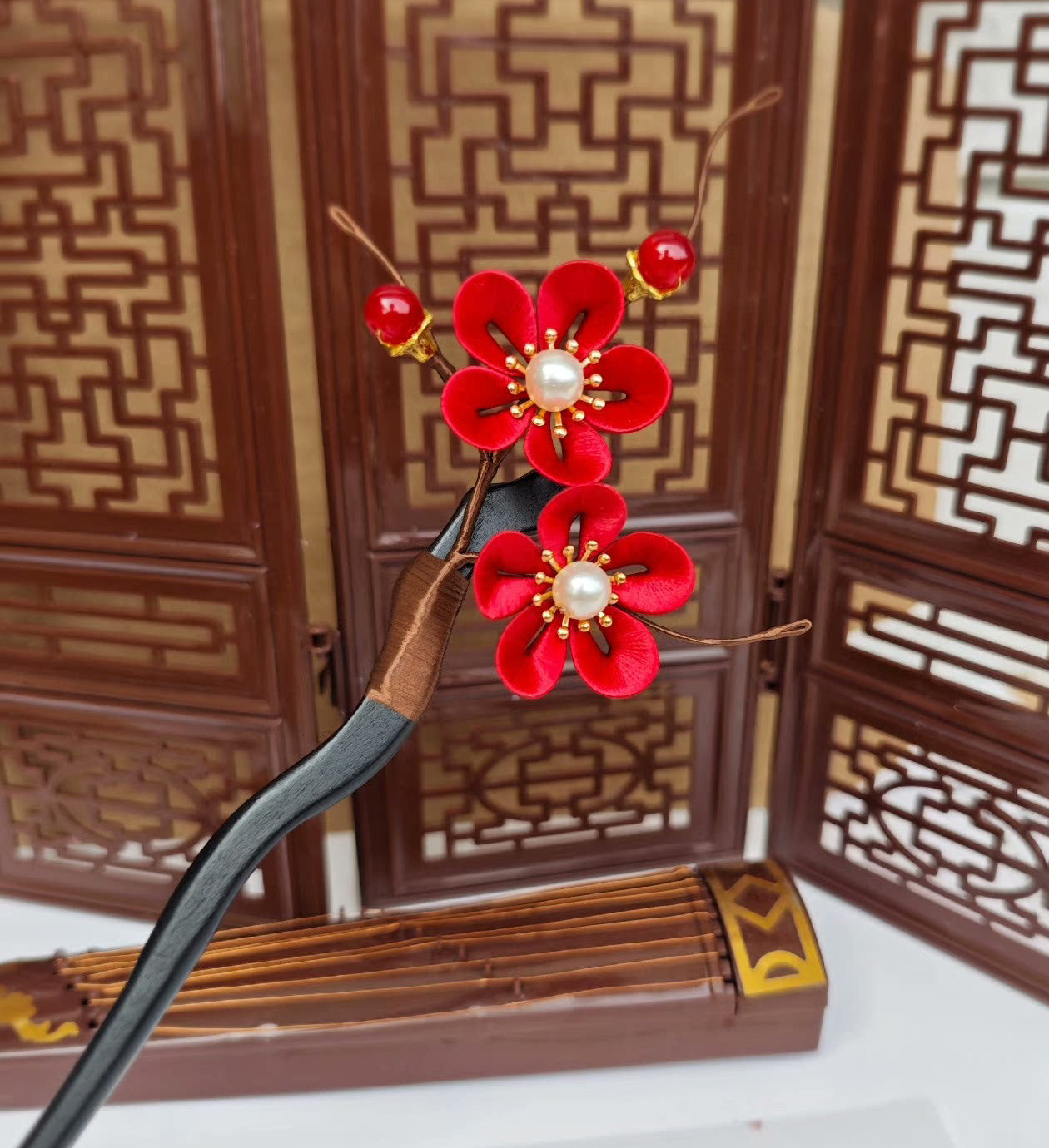Red Plum Blossom Handmade Hairpin - Silk Hairpin(Chanhua)