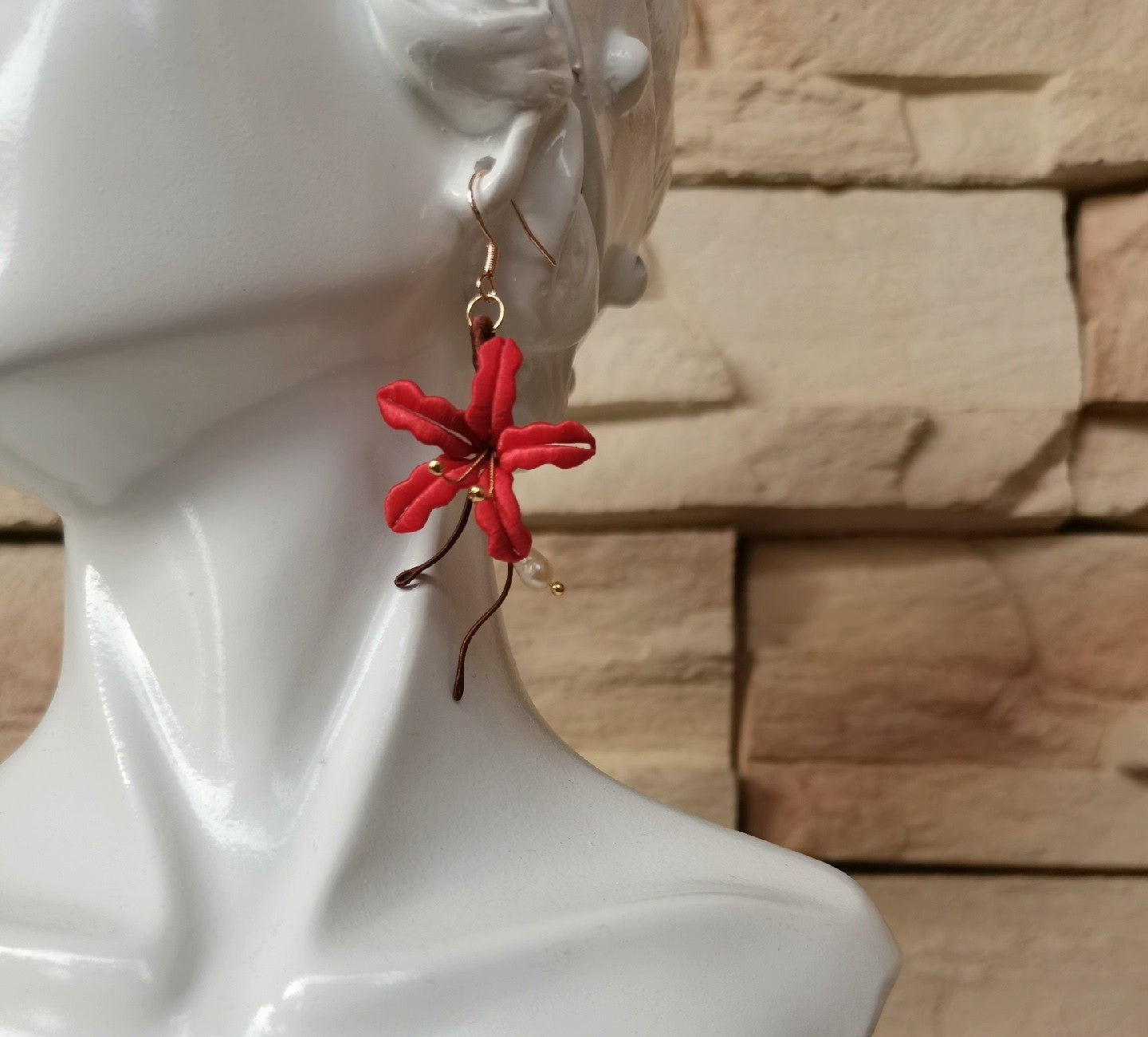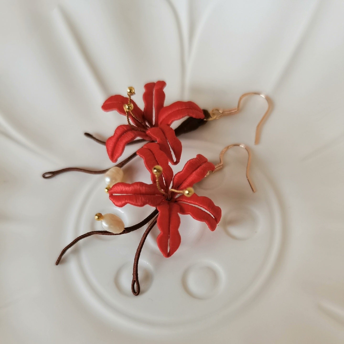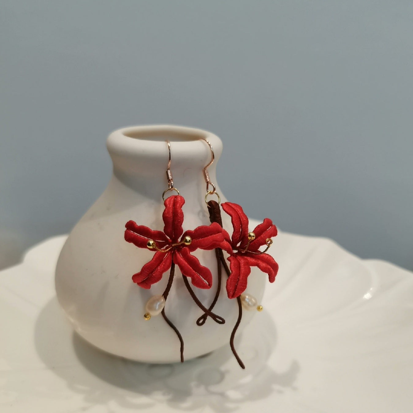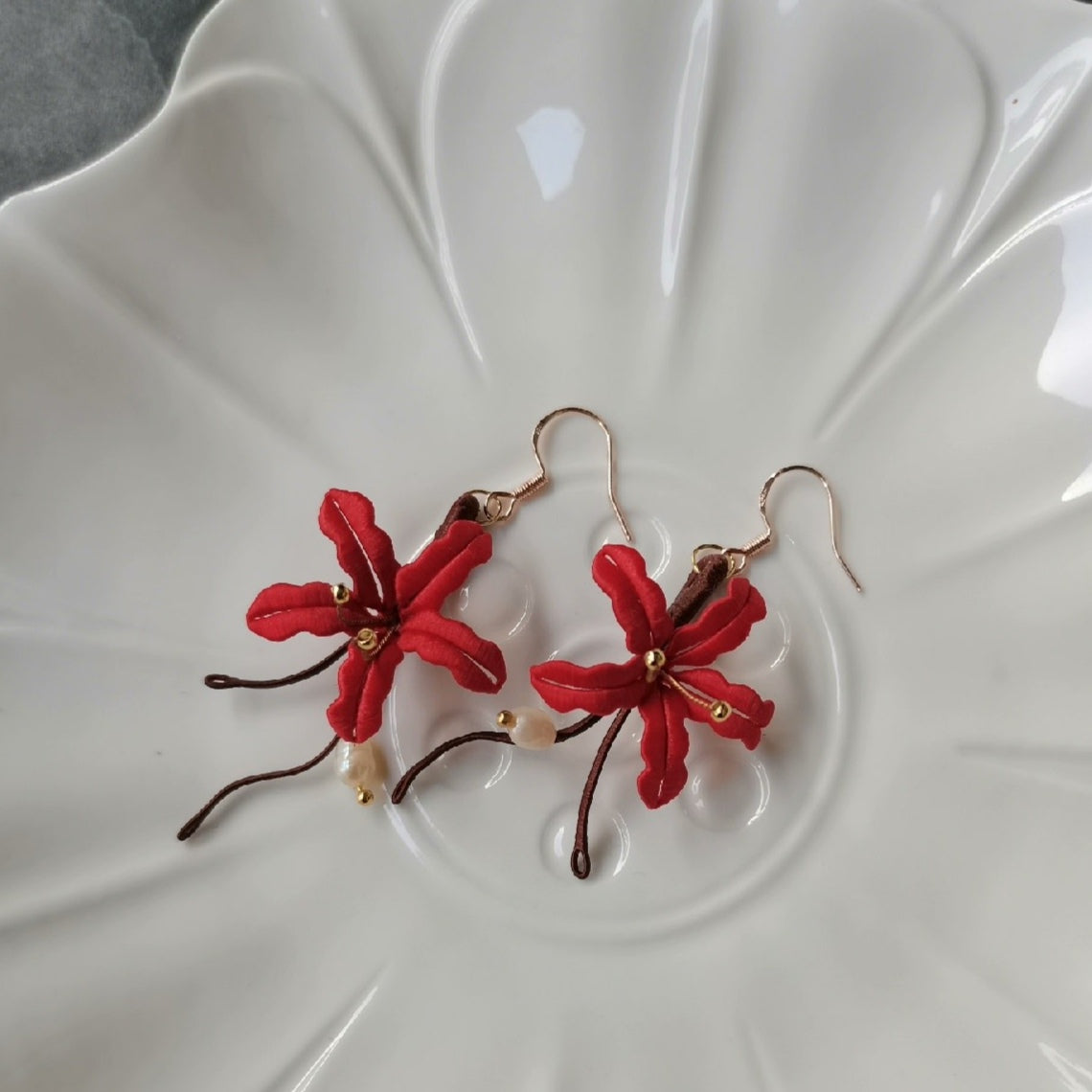 Red Spider Lily Bespoke Earrings - Red Silk Earrings(Chanhua)