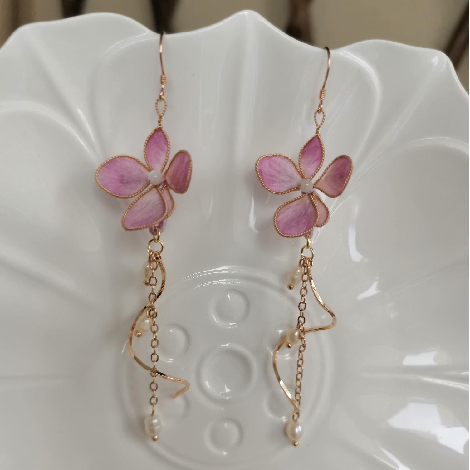Small Flower Bespoke Earrings - Silk Earrings(Ronghua)