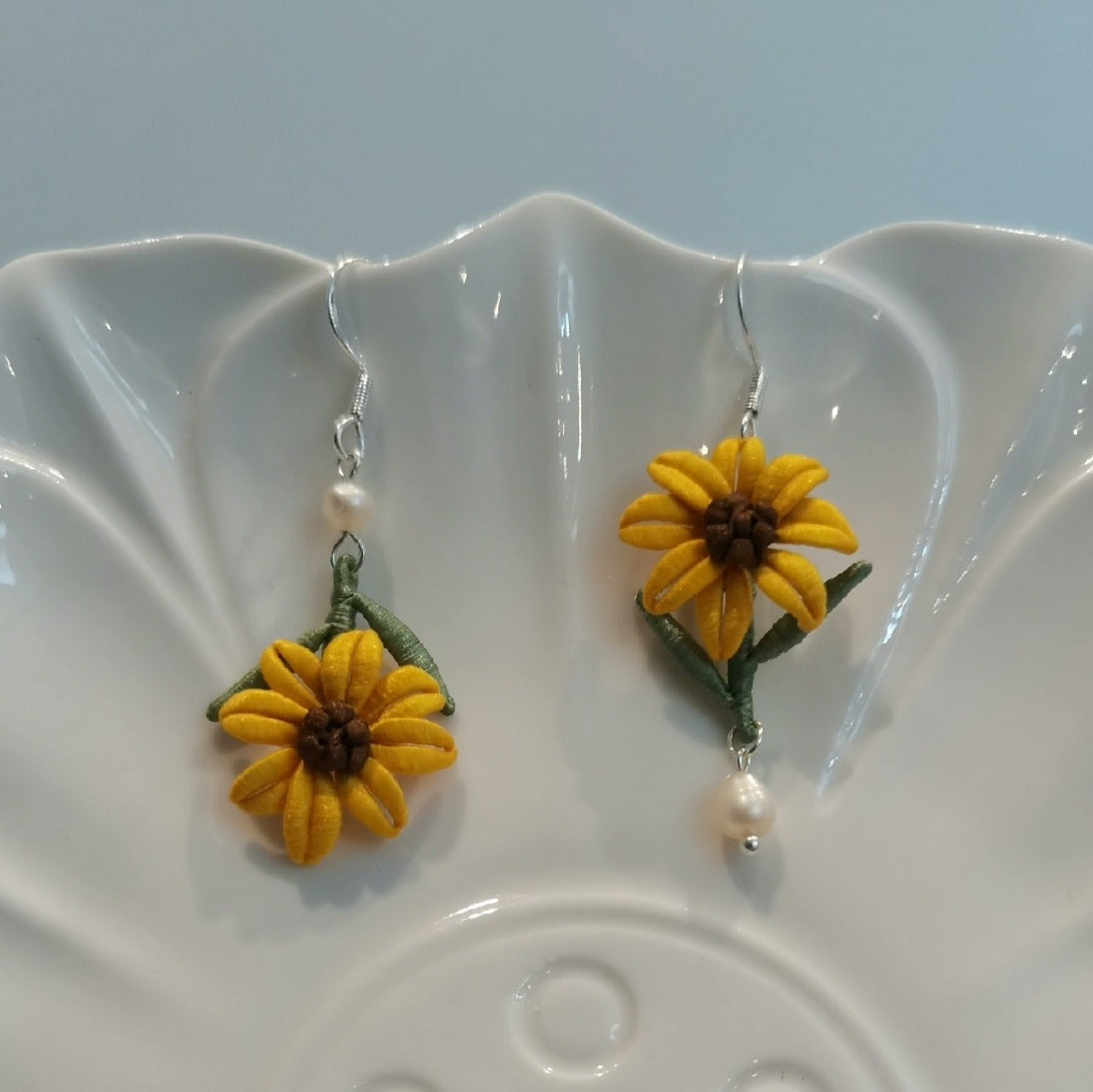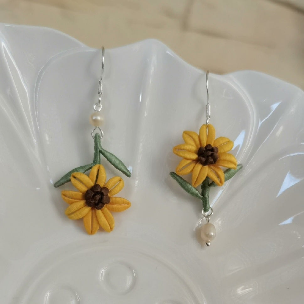 Sunflower Bespoke Earrings - Yellow Silk Earrings(Chanhua)