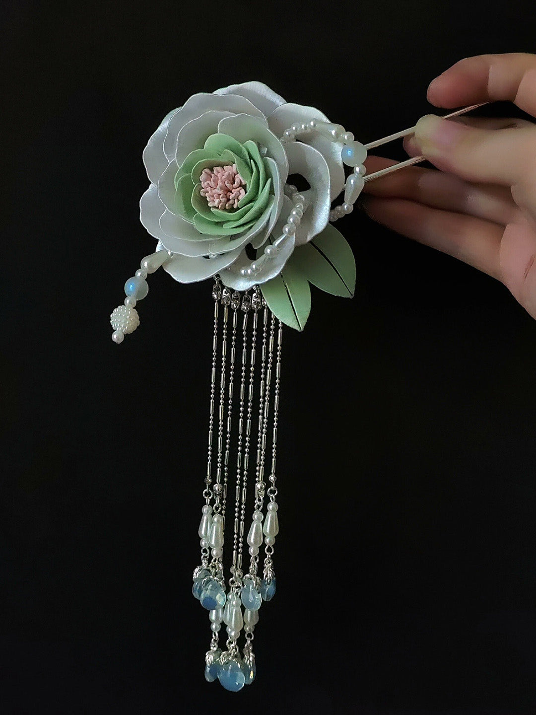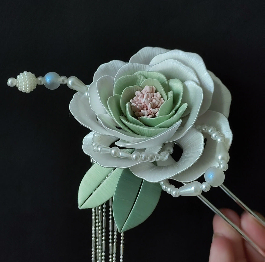 White Peony Bespoke Hairpin - Silk Hairpin(Chanhua)